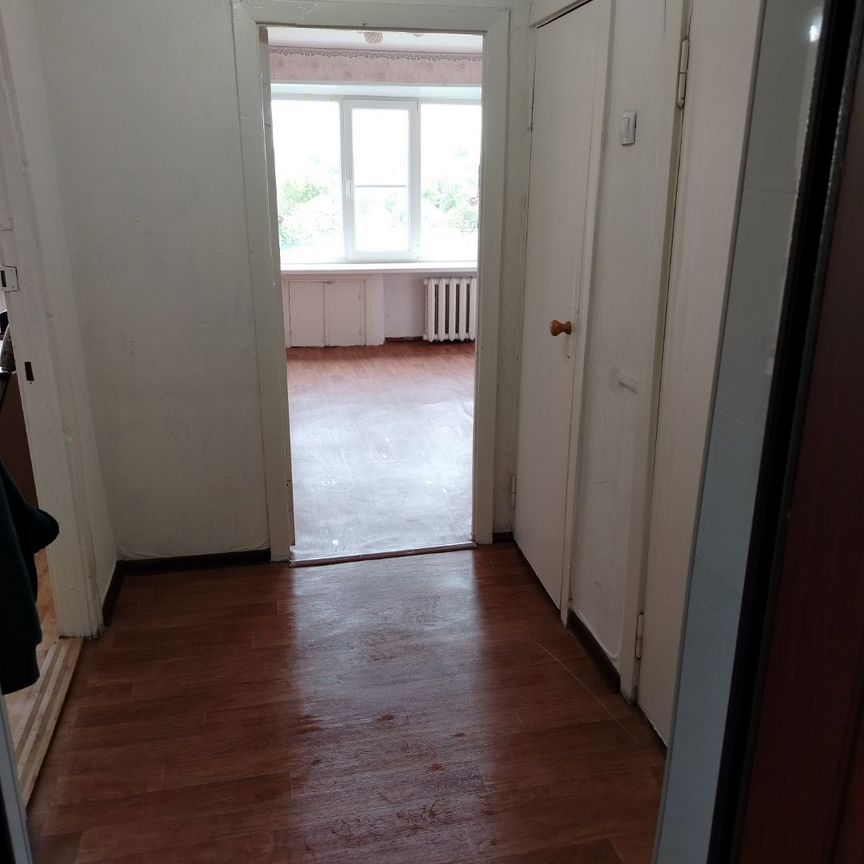 В квартире из мебели только диван в хорошем состоянии, и во второй комнате — электрическая плита (рабочая), а также проведены коммуникации — вода и канализация, ранее комната использовалась как кухня, при желании на этаже отдельно имеется кухня. В шаговой доступности Диагностическая больница, школа, детские сады, продуктовые магазины, аптека.