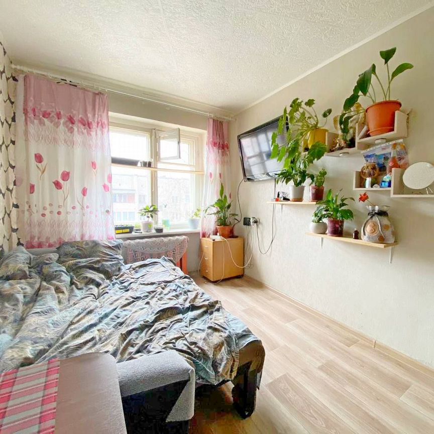 В продаже доля в двухкомнатной квартире 458/1000, т. Е. Почти половина. В реальности это комната слева. Правую комнату снимает приятная приятная семейная пара. Можно купить нашу комнату и оставить в ней жить текущего клиента (платит стабильно, без просрочек, приятная, чистоплотная). Вторая хозяйка свою долю продавать не собирается. Без долгов и обременений. Один взрослый собственник. Чистая продажа.